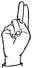 На ћирилици написано АРСЕНИЈЕ ГАРОЊА састоји се из 14 слова [?]. Исписано ћириличном једноручном азбуком за глувонеме: